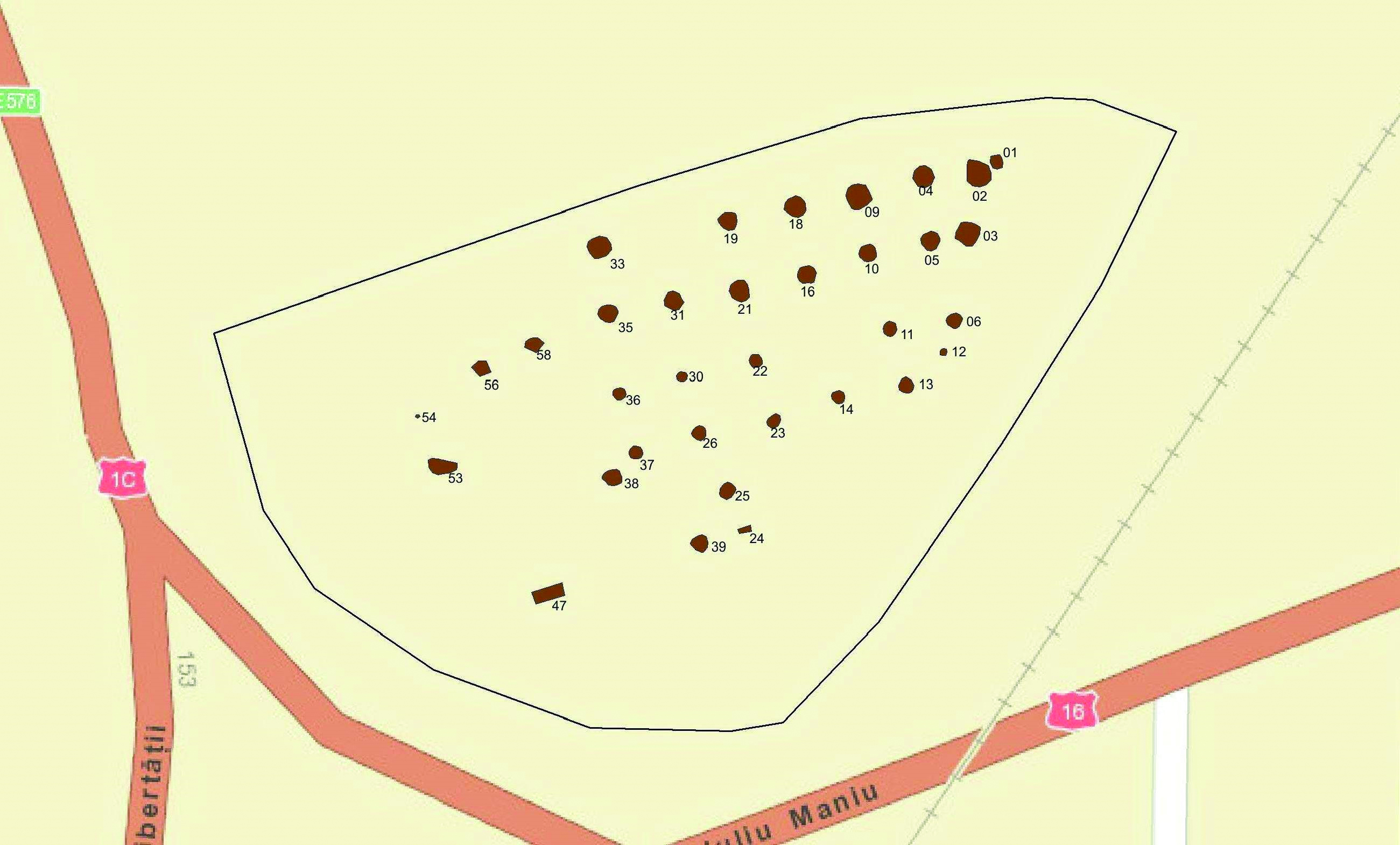 | Reper | Necropola a fost descoperită lângă un punct control circulaţie, în centrul satului. | |