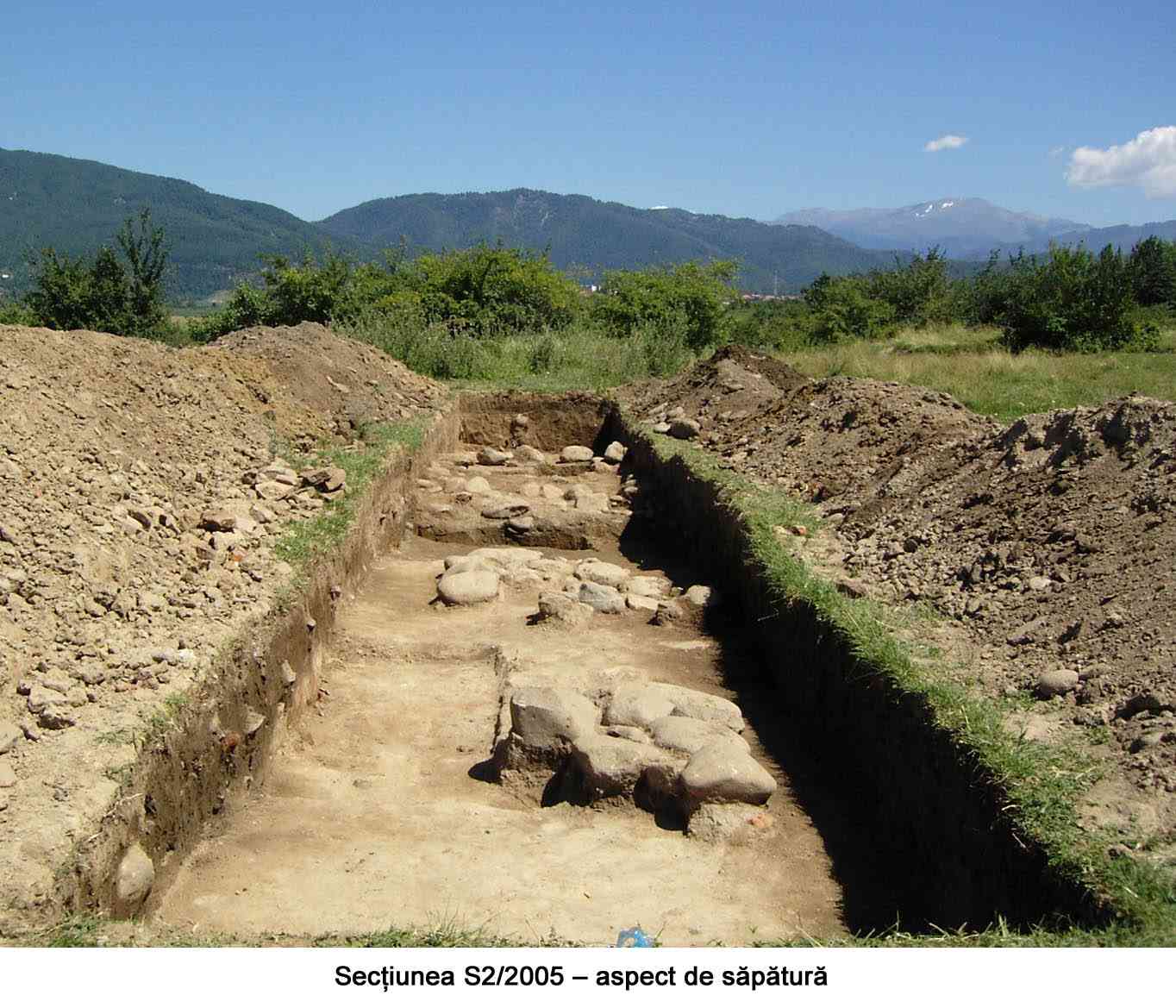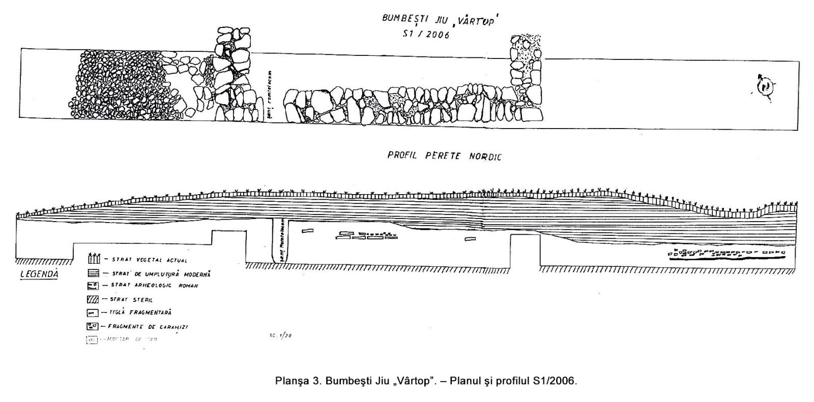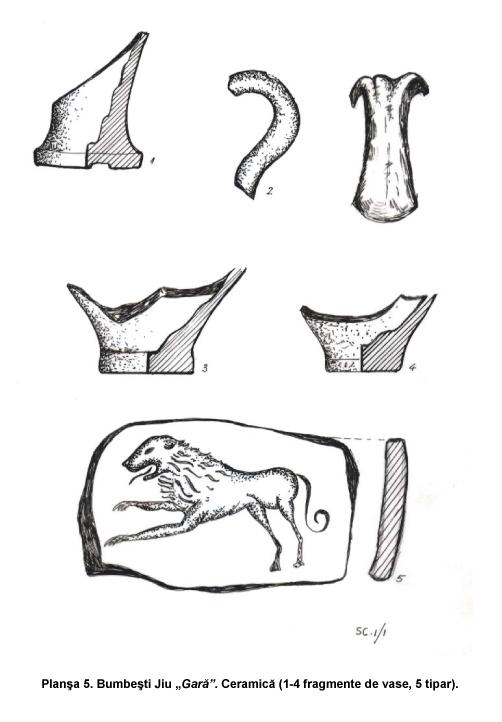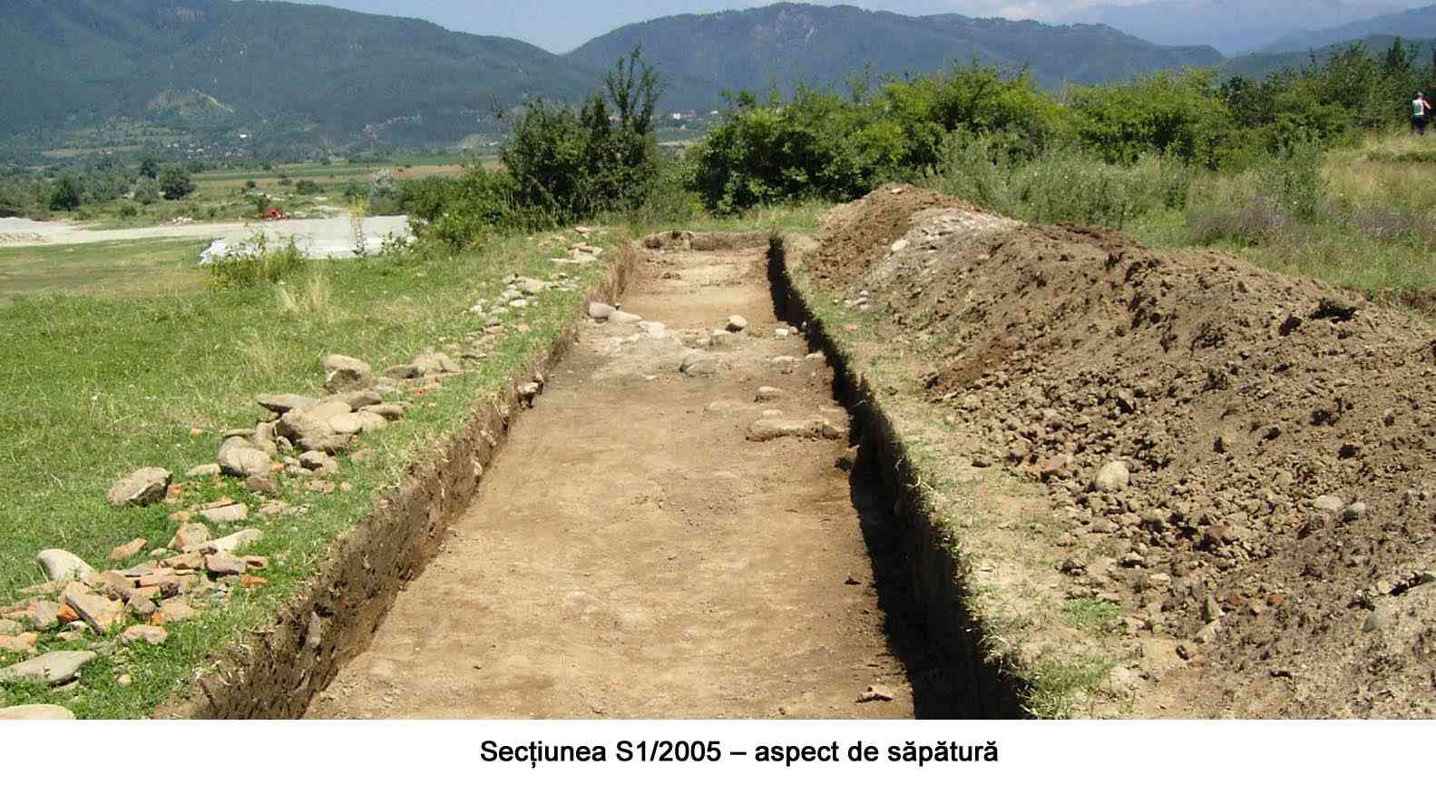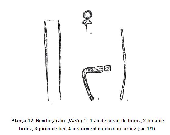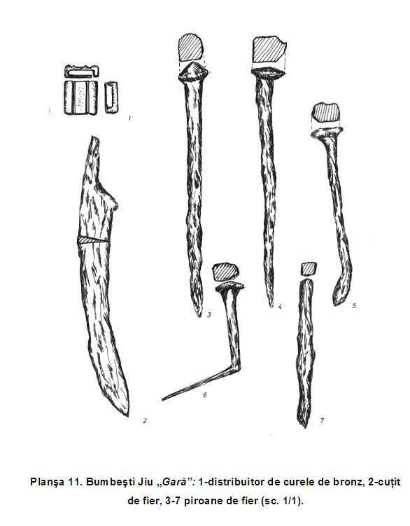 Mai mult de jumătate din suprafaţa castrului a fost distrusă de apele Jiului. Din el se mai păstrează astăzi doar 76,60 m din latura sudică şi latura estică de 168,80 m. Materialul arheologic rezultat constă din piese de armament (vârfuri de suliţe şi lănci), o calotă de coif roman, numeroase fragmente ceramice, cărămizi ştampilate, monede.